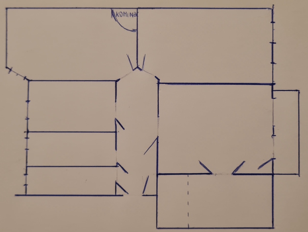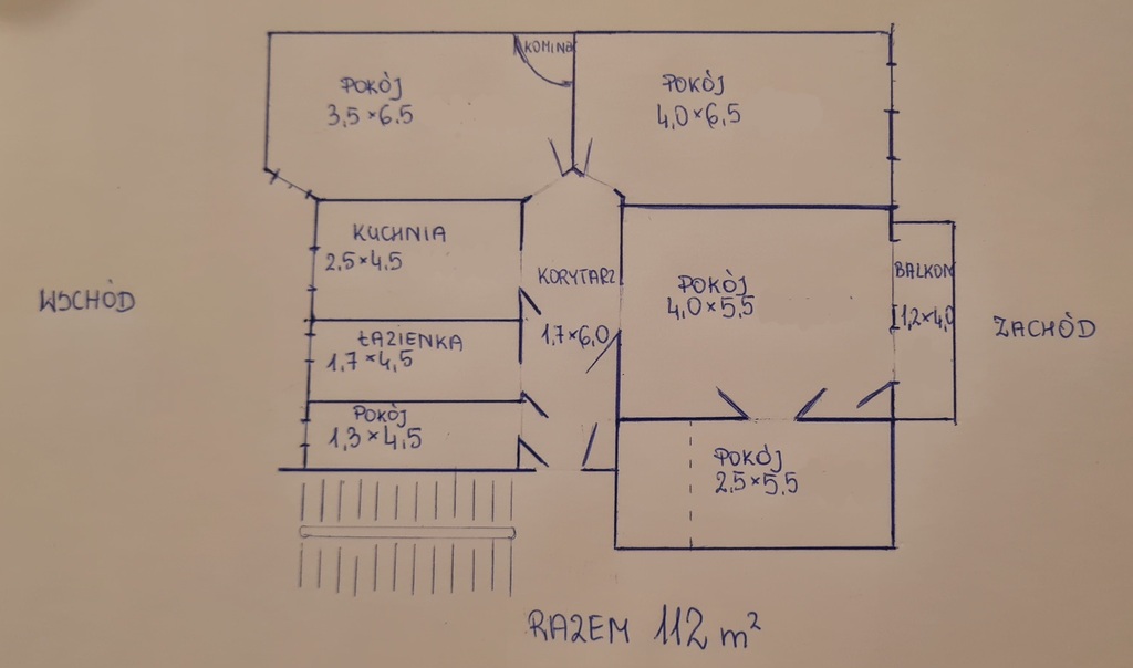 W skład mieszkania wchodzi 5 pokojów ,kuchnia ,łazienka ,obszerny hol z którego wchodzimy do wszystkich pomieszczeń z wyjątkiem jednego pokoju(jeden pokój jest przejściowy) .