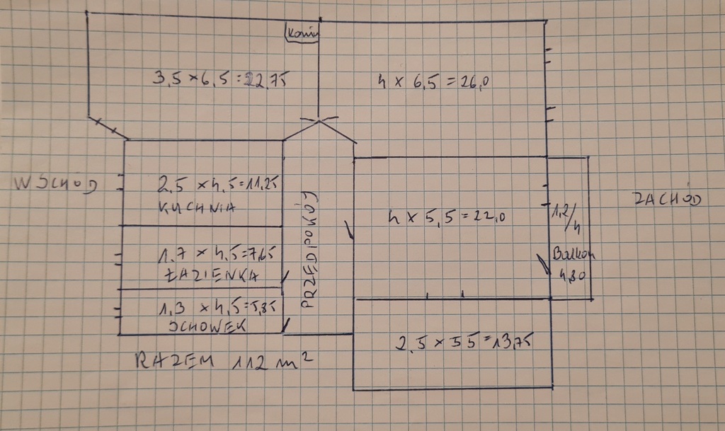 Rozkład mieszkania i wielkości pomieszczeń podane są na rzucie zamieszczonym wśród zdjęć.