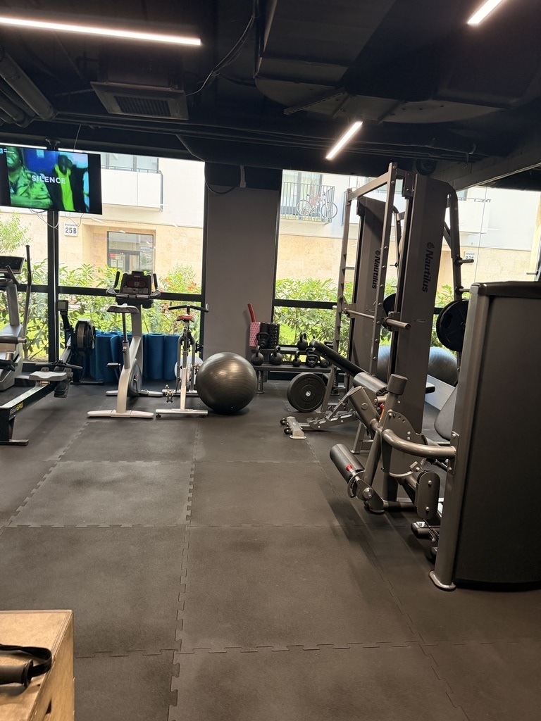 W sypialni czeka duże łóżko dwuosobowe oraz wydzielona strefa do pracy z biurkiem, więc możesz wygodnie pracować z domu. W łazience – elegancki prysznic i pralka, a w przedpokoju pojemna szafa w zabudowie. Osiedle to prawdziwy game-changer – z dziedzińca masz bezpośrednie przejście do siłowni (abonament tylko 135 zł/mies.) i dostęp do basenu i sauny (na wejścia lub w formie karnetu). Można zejść w szlafroku i klapkach – serio, wygodniej się już nie da.
