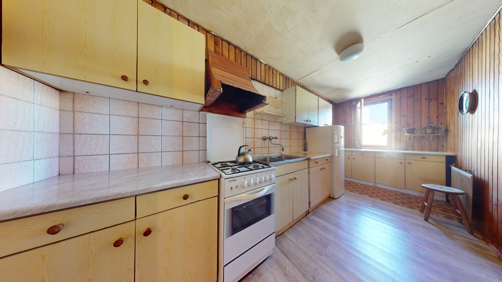 Na podłogach deska, w łazience glazura i terakota. W większości pomieszczeń okna PCV.