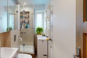 – łazienka razem z WC, wyposażona z kabinę prysznicową, z oknem,