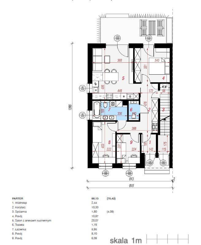 Mieszkanie o pow. użytkowa 68,13 m2, na którą składa się: