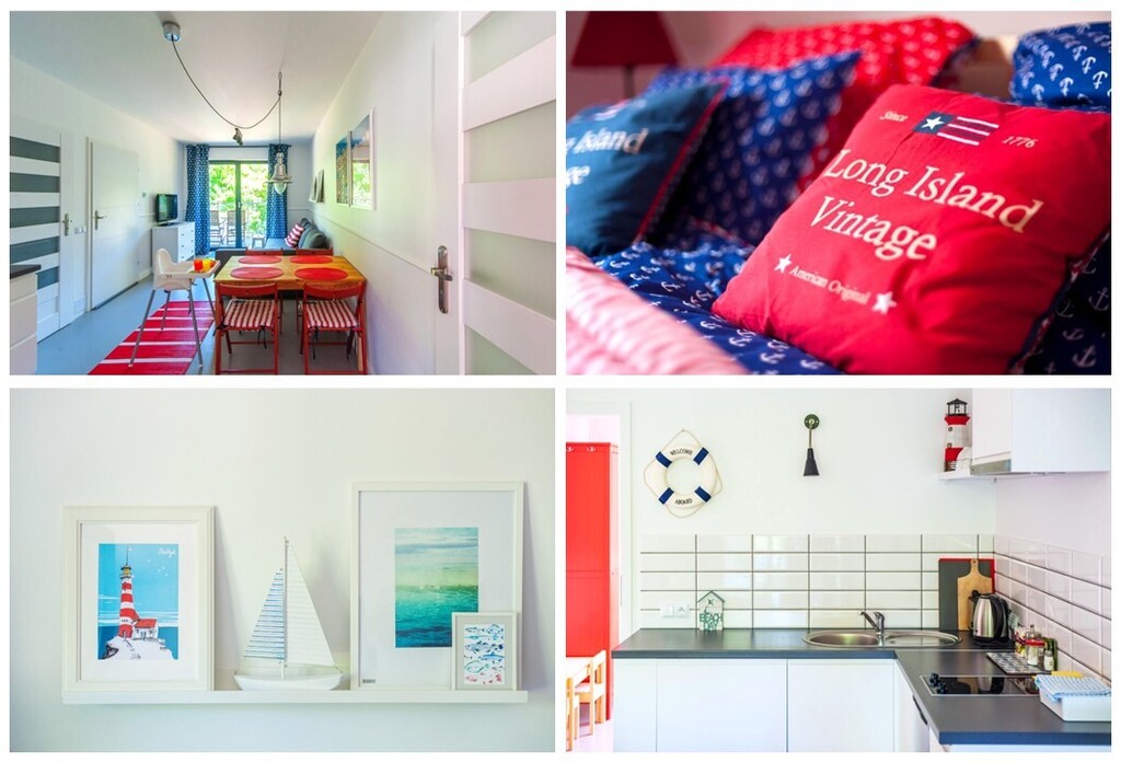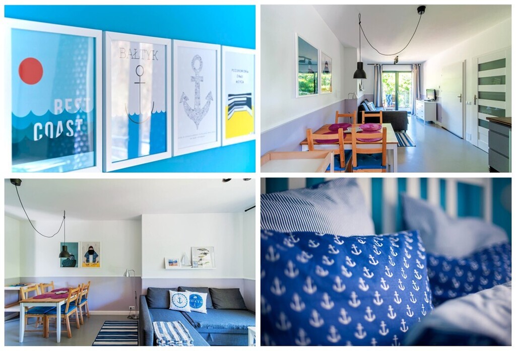 Do dyspozycji gości są 4 nowocześnie urządzone apartamenty mogące pomieścić do 5 osób, każdy posiadający wyjście na balkon od strony klifu z widokiem na plażę i morze. Wyposażenie obejmuje kompletne AGD (telewizor, lodówka z zamrażarką, płyta ceramiczna, pochłaniacz, zmywarka, pralka) oraz zastawę i akcesoria plażowe.