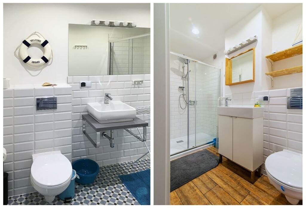 Na pierwszym piętrze dwa lokale o powierzchni około 35mkw każdy, składające się z gustownej sypialni z łóżkiem małżeńskim i dostawką, przestronnego i jasnego salonu z sofą narożną z funkcją spania dla kolejnych 2 osób, aneksu kuchennego z jadalnią, a także łazienki z prysznicem.