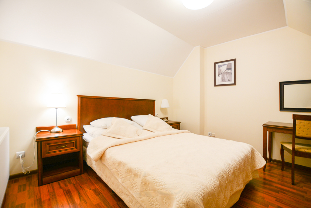 - samodzielne, w pełni wyposażone dwupoziomowe mieszkanie z aneksem kuchennym i łazienką,
