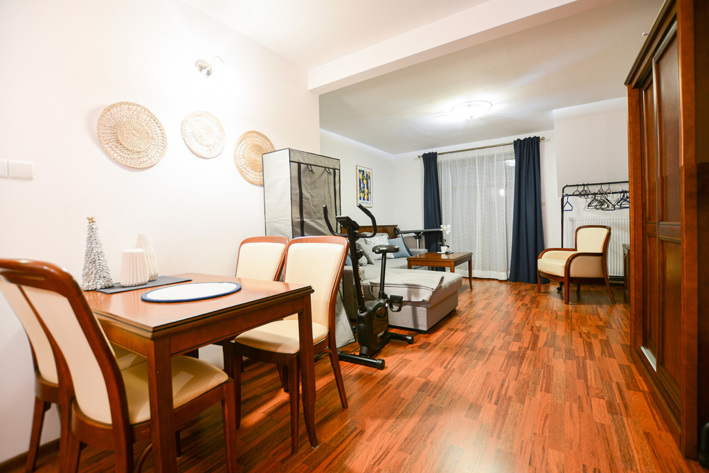 a sam możesz mieszkać w przestronnym, pięknym, wykończonym wysokiej jakości materiałami, w pełni wyposażonym mieszkaniu.