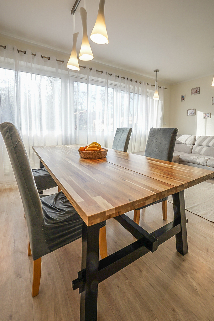 – jasnego, przestronnego salonu z wyjściem na taras i ogród,
