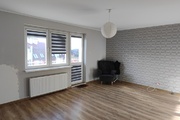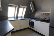 W mieszkaniu są okna PCV oraz połaciowe. Ściany są gładkie i malowane na jasne kolory, ale wymagają odświeżenia. Na podłogach w pokojach panele, w przedpokoju gres. W łazience kafle marki Tubądzin w ładnej stylistyce.