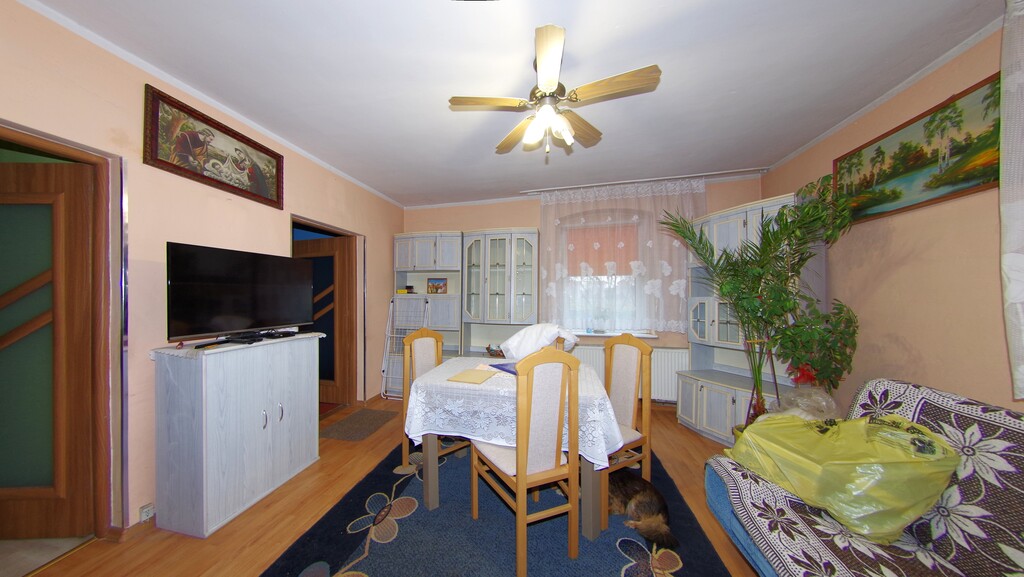 Powierzchnia wszystkich pomieszczeń to około 100 mkw przedsionek z którego wchodzi się do kuchni, a z niego do pokoi. Łazienka z w c i mała piwniczka. Na górę prowadzą schody gdzie cała przestrzeń to strych + wydzielony pokój /. Rozprowadzone centralne ogrzewanie, ciepło z pieca wegiel-drewno, kuchnia węglowa typu Westfalka , duże podwórko gdzie mamy budynek gospodarczy, dodatkowo ogród i sad z drzewami owocowymi. Do budynku doprowadzony gaz. Nieruchomość idealna dla rodziny i osób ceniących sobie spokój, ciszę oraz przestrzeń . Cena , która jest jeszcze do negocjacji powoduje ,że oferta jest godna polecenia i zobaczenia na żywo. Gorąco polecam !Zapraszam na prezentacje!