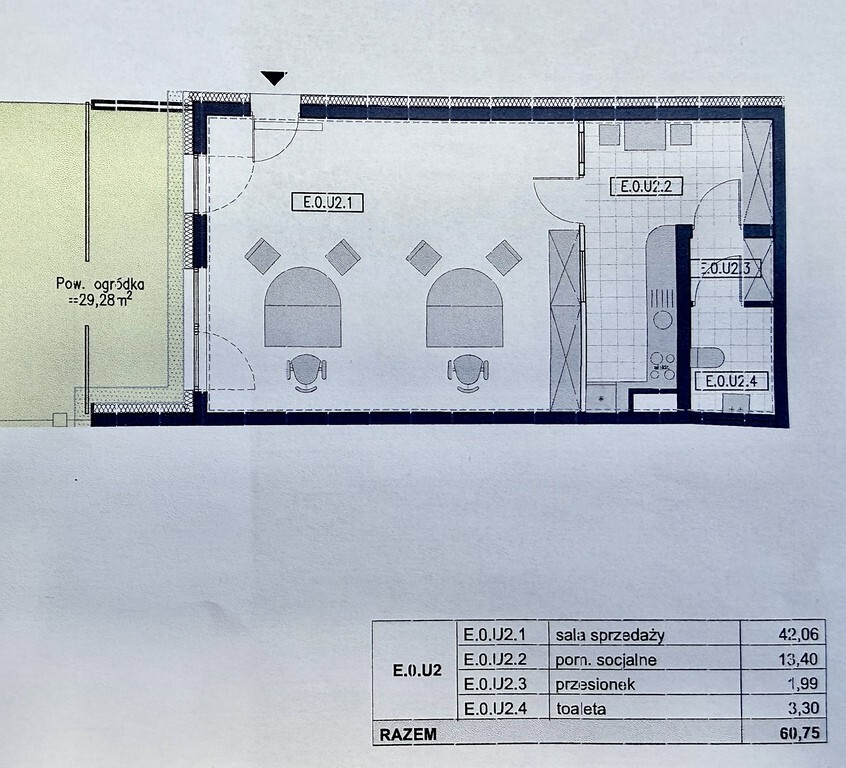 Lokal o powierzchni 60,75 m2, położony na parterze bloku znajdującego się na nowym osiedlu.