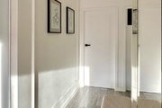 Kiedy przekraczasz próg, wita Cię jasny, przestronny korytarz z dużą szafą w zabudowie – idealne miejsce, żeby zostawić kurtkę, buty i od razu poczuć porządek.