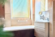 • Łazienka z oknem, wyposażona w wannę – naturalne światło optycznie powiększa przestrzeń i dodaje wnętrzu przytulności.