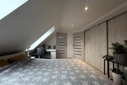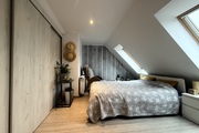 Na drugim piętrze znajduje się duża sypialnia z szeroką szafą i garderobą.