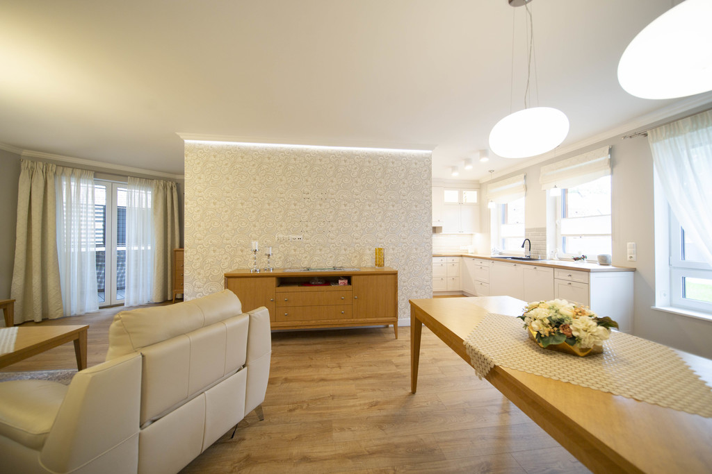 – Jasny, przestronny salon z aneksem kuchennym z bezpośrednim wyjściem na niewielki taras