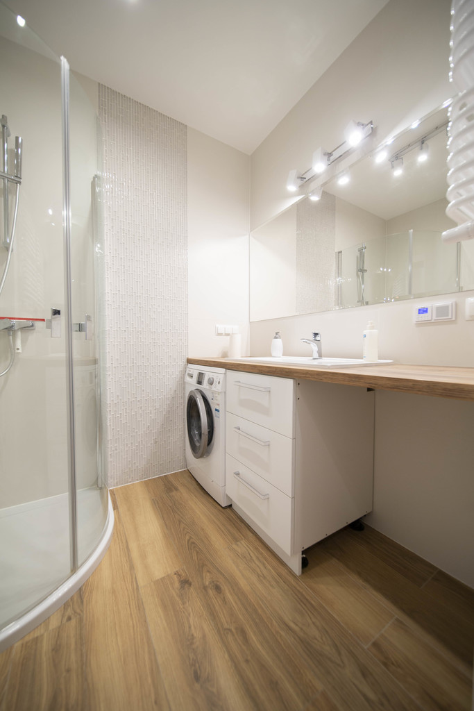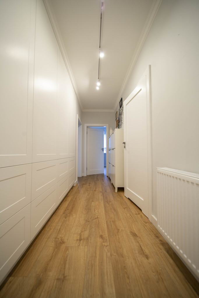 – Duży przedpokój z szafami w zabudowie, które pełnią funkcję garderoby