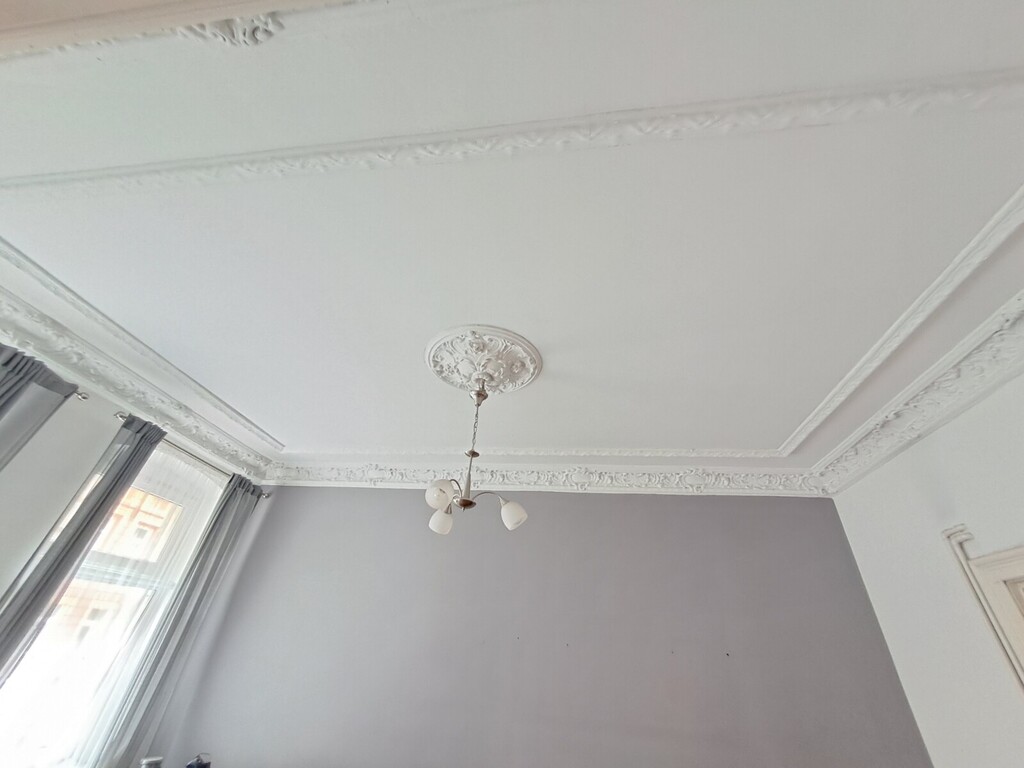Zachowały się piękne ozdobne detale architektoniczne, drewniane oryginalne drzwi.