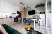 • Kuchnia wyposażona w meble kuchenne, oraz sprzęt AGD: płyta indukcyjna, zmywarka, piekarnik  lodówka, okap, mikrofala