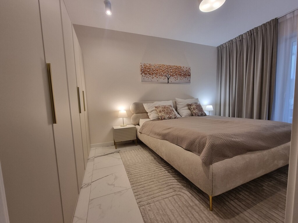 - Ogrzewanie podłogowe we wszystkich pomieszczeniach apartamentu – gwarantujące równomierne rozprowadzanie ciepła, wysoki komfort użytkowania i estetyczne wnętrza bez tradycyjnych grzejników.