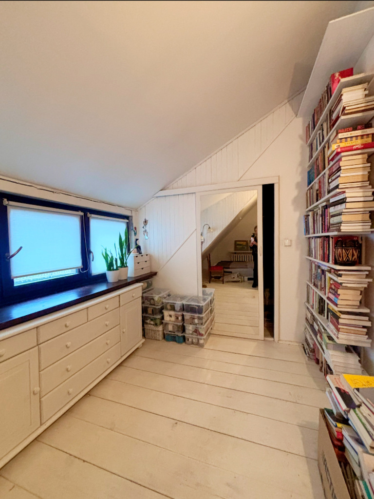 I piętro z osobnym wejściem: hall, salon, 1 pokój z własną garderobą, osobnka kuchnia z wyjściem na przestronny taras, łazienka z wanną i WC,