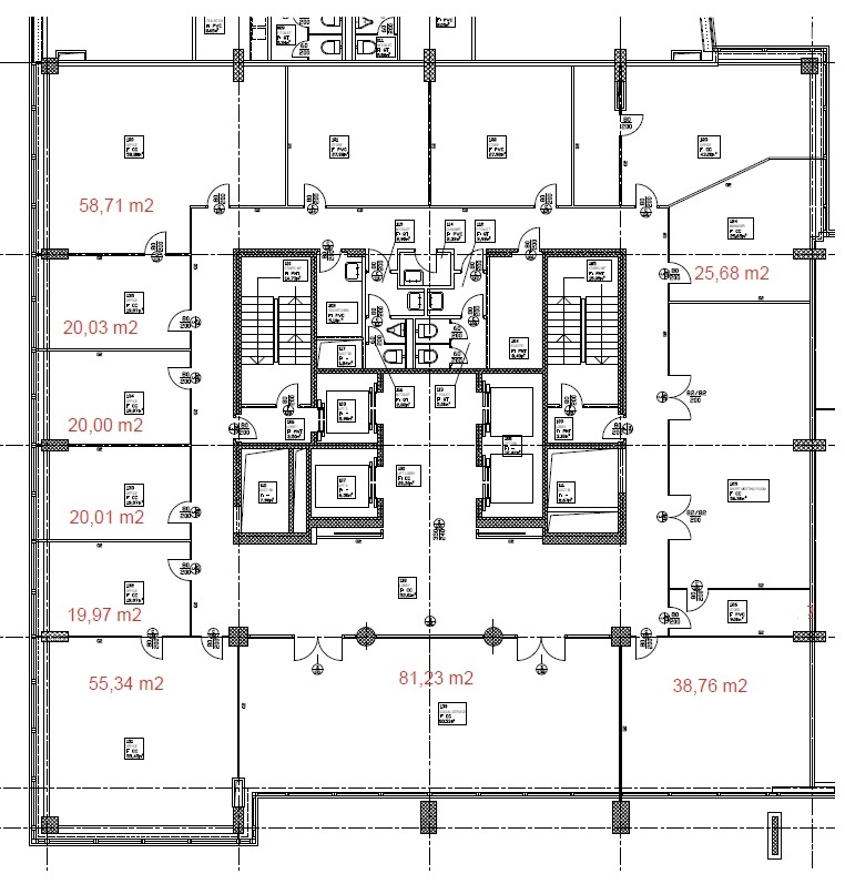 Na powierzchnię 340 m2 składa się 8 pokoi biurowych w systemie gabinetowym o powierzchniach od 20 do 58 m2 praz sala konferencyjna o pow. 80 m2