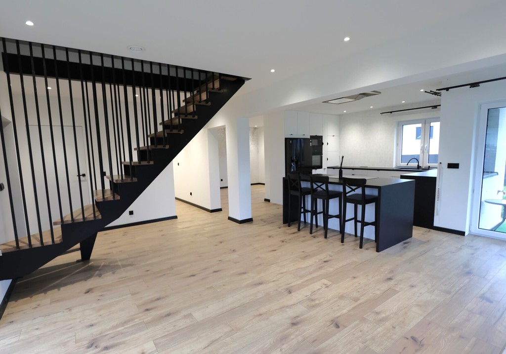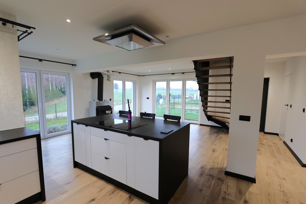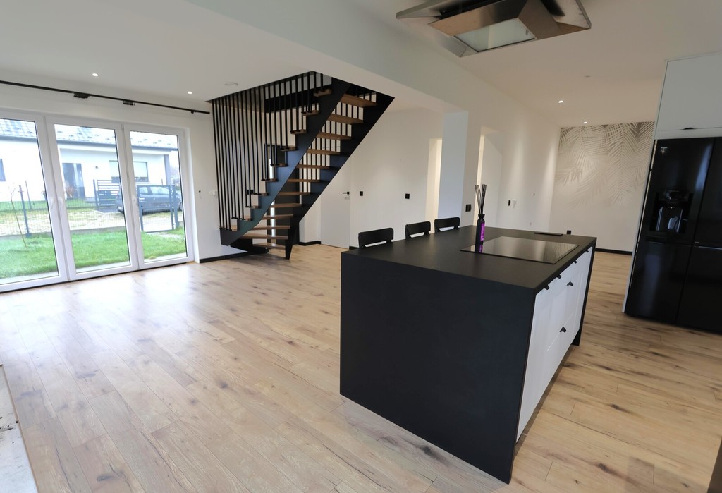 Funkcjonalny układ domu, nadający się dla 4 -5 osobowej rodziny, z przyjemnym wnętrzem, wykończony materiałami dobrej jakości.
