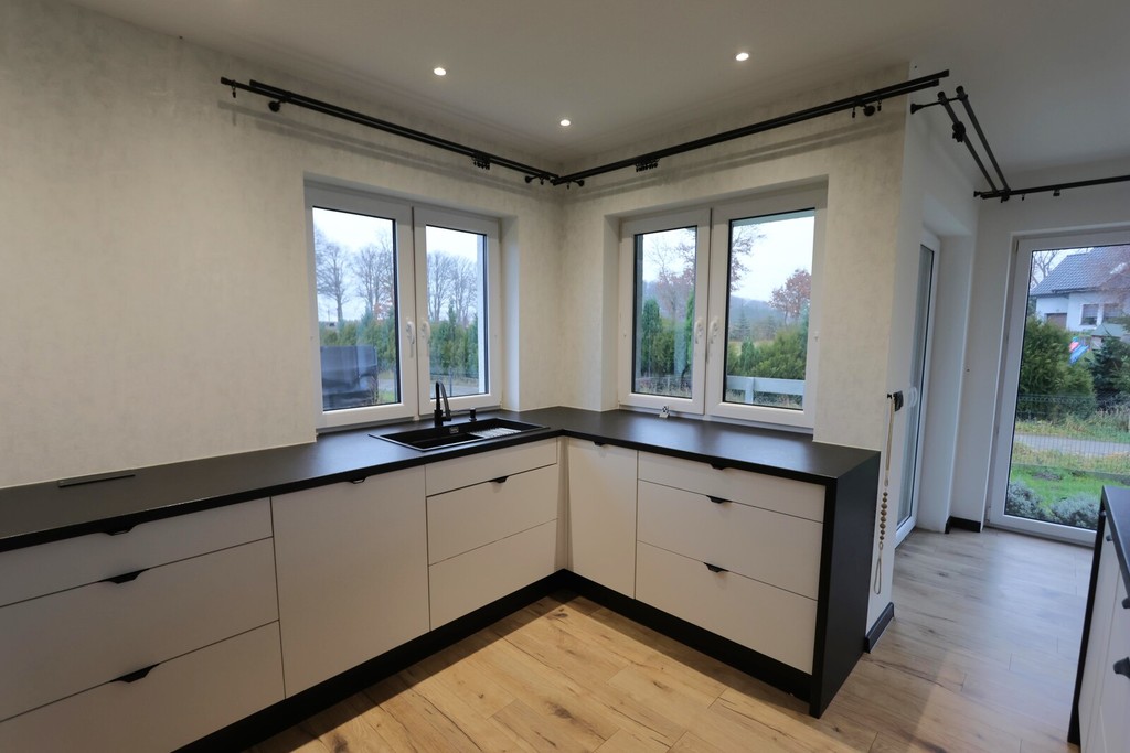 W cenie zakupu meble w stałej zabudowie pod wymiar (meble kuchenne), nowy sprzęt kuchenny w zabudowie.