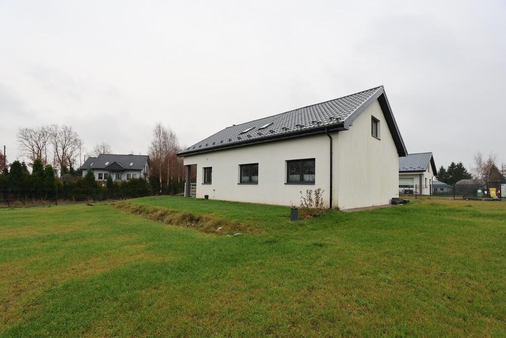 Dach pokryty dachówką, docieplenie dachu – wełna, docieplenie elewacji – styropian 20 cm. Na podłogach panele oraz płytki, ściany malowane. Okna PCV 3 szybowe. Ogrzewanie elektryczne – maty grzewcze na podczerwień, fotowoltaika o mocy 7,4 kW, kominek żeliwny Simple o mocy 15 kW, przygotowany pod dystrybucję gorącego powietrza..