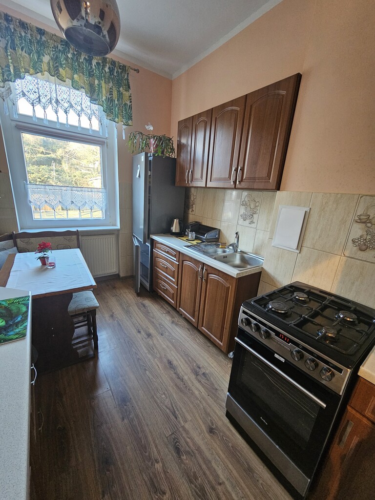 -kuchnia z oknem z pięknym widokiem na zieleń ,