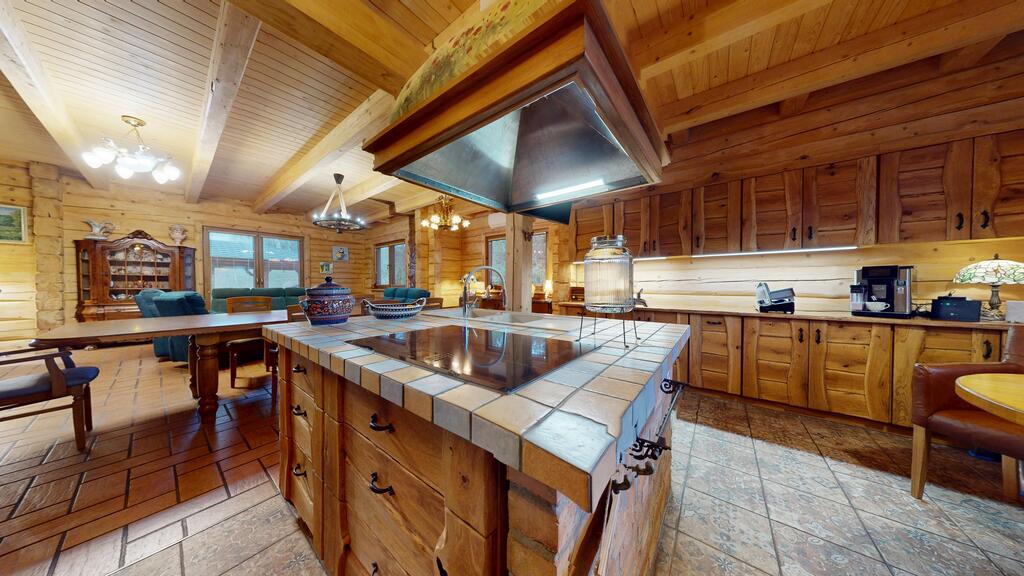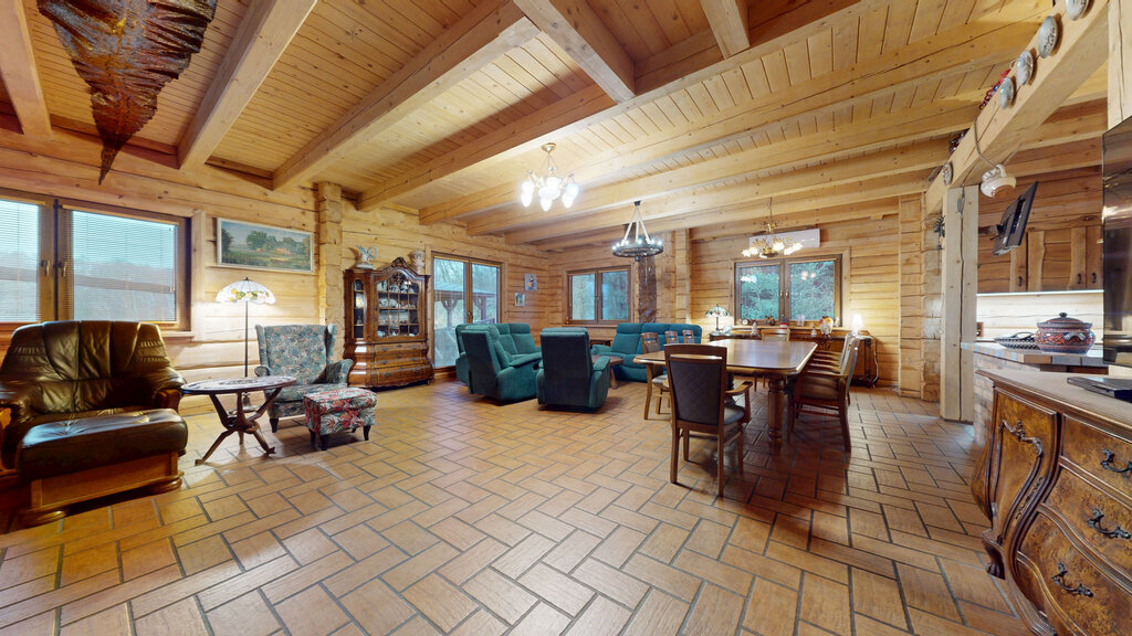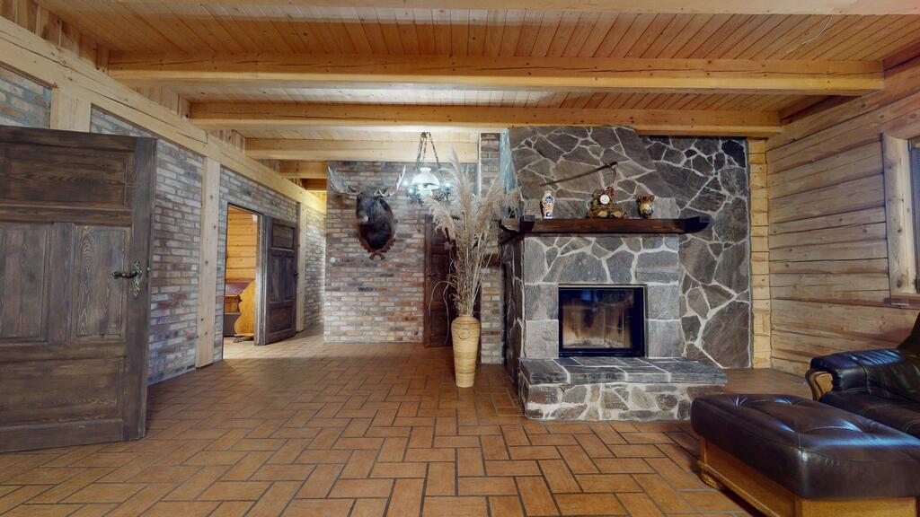 Punkt centralny stanowi wolnostojący dom jednorodzinny, chata polska:) wybudowany i oddany do użytkowania w 2019 roku. Posadowiony w konstrukcji drewnianej, wykonany z bali o grubości 22 cm zapewnia bardzo dobrą izolację termiczną oraz zdrowy mikroklimat wnętrz, piękny dobrze zaizolowany dach.
