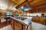 Powierzchnia użytkowa to ponad 220m² gdzie sercem domu jest przestronny, reprezentacyjny salon połączony z kuchnią, urządzony w staropolskim klimacie. Szczególną uwagę zwraca efektowny kominek, stanowiący kluczowy element wnętrza, nadając  mu wyjątkowego charakteru z  przytulną atmosferę oraz ciepłem domowego ogniska – foto.
