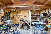 Na terenie posesji znajdują się także duża drewutnia 50 m² , profesjonalny warsztat stolarski oraz reprezentacyjny domek letniskowy 50 m² na d stawem. Przed domem zlokalizowana jest wiata z trzema zadaszonymi miejscami postojowymi.