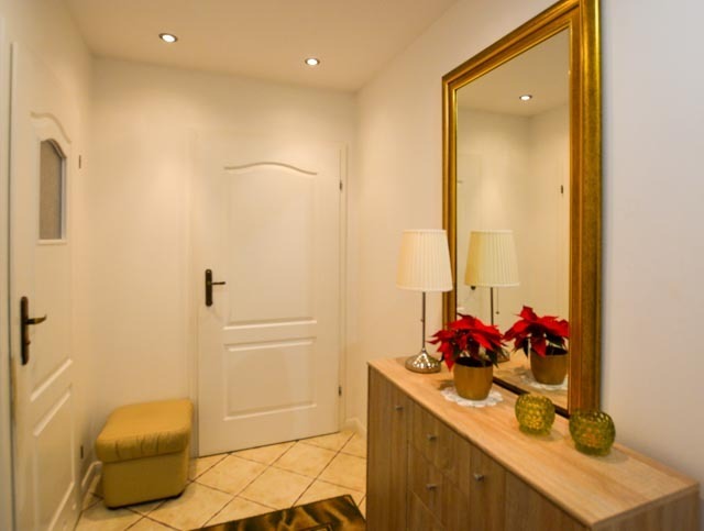 – na parterze płytki na podłogach, na piętrze panele