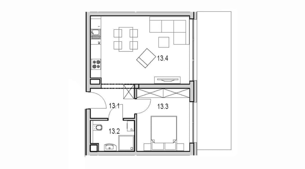 Funkcjonalny układ z salonem dziennym + aneksem kuchennym, sypialnią, łazienką i przestronnym balkonem, idealny zarówno na własne cele mieszkaniowe, jak i pod inwestycję pod wynajem.