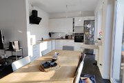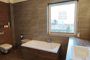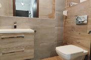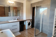 Ogrzewanie i ciepła woda pochodzą z wydajnego, dwuobiegowego pieca gazowego marki Viessman, który jest co roku na bieżąco serwisowany. Na parterze budynku rozprowadzone jest ogrzewanie podłogowe, na piętrze zastosowano je również w łazience, a w pokojach znajdują się grzejniki panelowe.