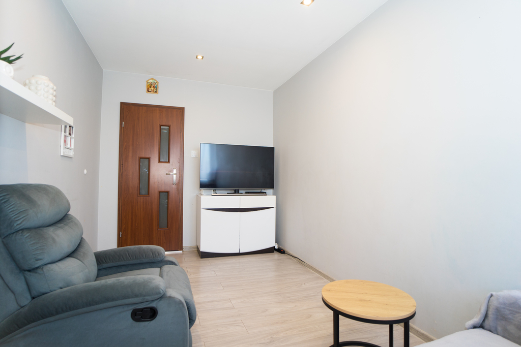Mieszkanie kilka lat temu odświeżono i odmalowano. Na podłogach panele, w łazience gres, oraz glazura na ścianach.
