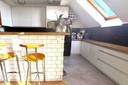 - aneks kuchenny z meblami wykonanymi na wymiar, oddzielony od salonu praktyczną wyspą,