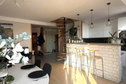 Przemyślany układ dwóch poziomów : Poziom dolny stanowi funkcjonalną, dzienną część mieszkania. Znajduje się tu: