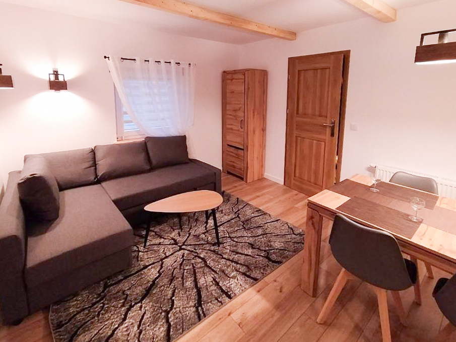 • Serce domu: Salon z rozkładaną, wygodną sofą, gdzie wieczory trwają dłużej, a rozmowy stają się głębsze.