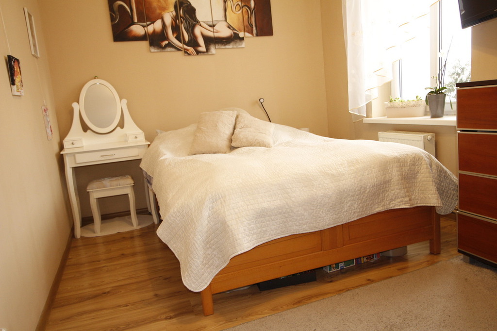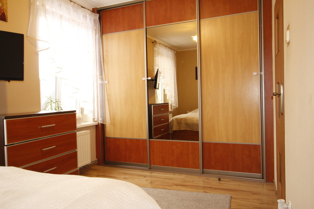 - sypialnia – przytulna i ustawna z dużą, praktyczną szafą w zabudowie, która gwarantuje mnóstwo miejsca do przechowywania;