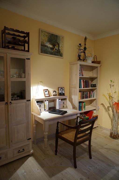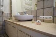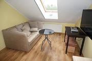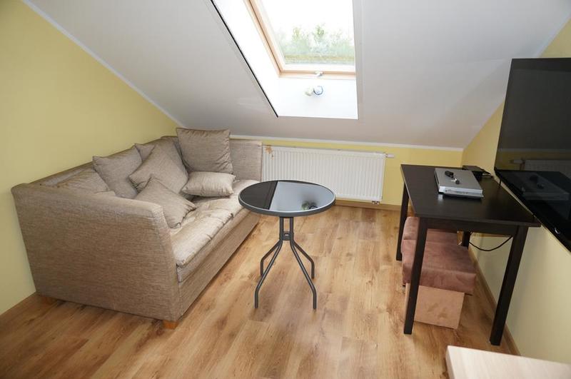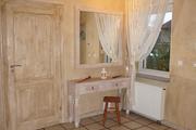 Wykończenie – w sypialni położona jest deska bielona, a ściany są gładzone malowane, w łazience na podłodze oraz części ścian płytki kamienne, resztę ścian pokrywa tynk strukturalny.