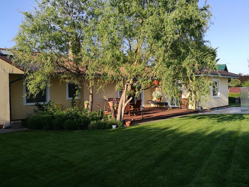 Willę otacza w pełni zagospodarowany ogród wyposażony w system zraszania zasilany wodą ze studni, z licznymi nasadzeniami oraz przestrzenią rekreacyjną.