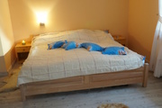 2) Sypialnia z bezpośrednim wyjściem na taras i przylegającą przestronną łazienką z wanną, prysznicem, dwiema umywalkami, bidetem i wc.