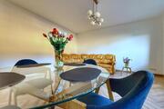Reprezentacyjna, jasna przestrzeń dzienna z wyjściem na loggię, usytuowana na wschód. Wyposażony w duży „wypoczynek” wraz ze stolikami kawowymi, duży stół z krzesłami oraz komodę.