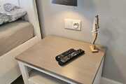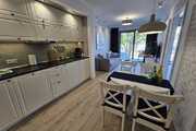 Apartament od strony północno-wschodniej na 2 piętrze składa się z pokoju dziennego z aneksem kuchennym (nowa zabudowa wraz ze sprzętem AGD: lodówko-zamrażarka, mikrofalówka, płyta elektryczna, zmywarka, pralka), sypialni oraz łazienki z wc z funkcją bidetu i prysznicem.