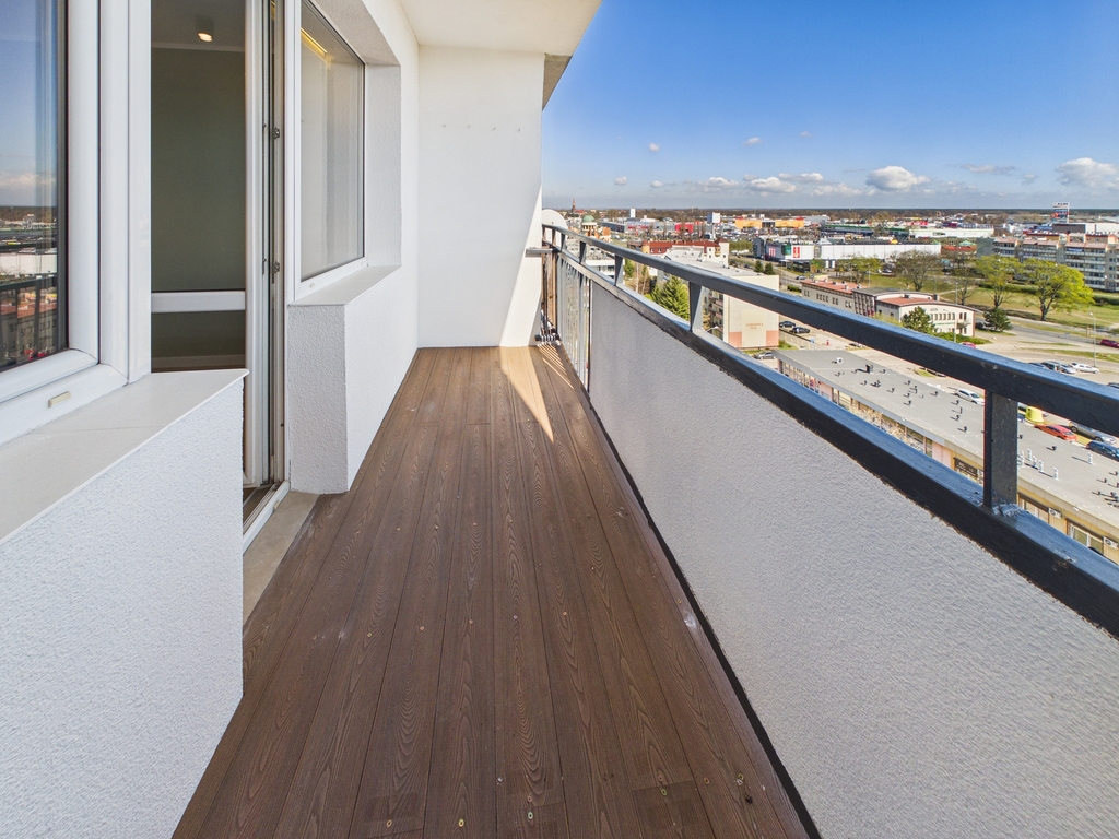 Dużym atutem jest duży balkon, który w praktyce staje się dodatkową przestrzenią do życia. Poranna kawa czy wieczorny odpoczynek z widokiem na miasto to coś, co trudno przecenić.