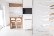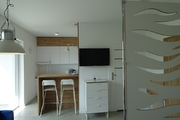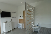 Powierzchnia apartamentu: 27,92 m2. Salon z kuchnią o powierzchni 23,5 m2, pozostałą część powierzchni zajmuje łazienka – 4,6 m2.