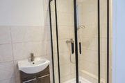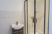 * W łazience glazura i terakota, nowa kabina prysznicowa z armaturą. Nowe piony.