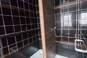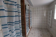– Przyziemie: Zaadoptowane na część mieszkalną, zawierające dwa pokoje, kuchnię, WC oraz łazienkę z trzema kabinami prysznicowymi i pralnią.