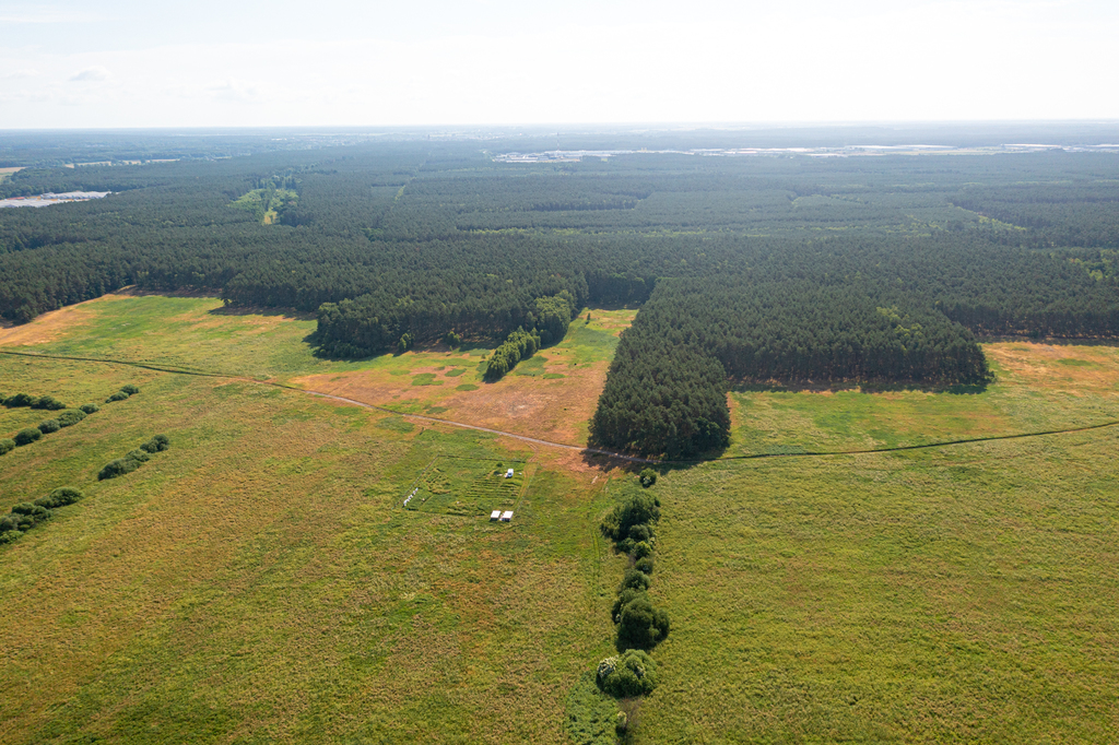 Działka rolna o powierzchni 3167 m2 położona w pobliżu miejscowości Komarowo około 5 km na zachód od Goleniowa i 15 km na północ od prawobrzeżnych dzielnic Szczecina, w otulinie Puszczy Goleniowskiej.