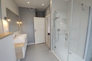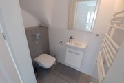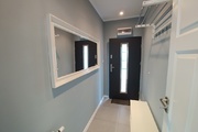 Mieszkanie składa się z: salonu (panele podłogowe, ściany wyszpachlowane na biało farba Dulux/antyczny marmur, lampy) z kuchnią z oknem: (meble kuchenne w zabudowie, lodówko-zamrażarka, elektryczna płyta grzewcza, piekarnik elektryczny, okap kuchenny, zlewozmywak, zmywarka), przestronnej sypialni, wiatrołapu, łazienki z oknem (wanna, kabina prysznicowa, dwie umywalki i wc, jest możliwość doposażenia w pralkę), balkonu i wc ( ustęp, umywalka). Dodatkowo przedsionek oraz na dole do dyspozycji mieszkańców wspólny kawałek ogródka.